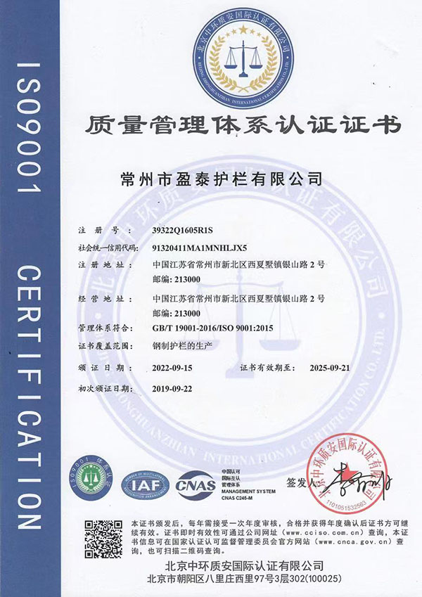 常州市盈泰护栏有限公司专业从事生产及销售护栏,道路护栏,河道护栏,绿化护栏,围墙护栏,建筑护栏,广告护栏,护栏网,镀锌钢制护栏,市政护栏,城市道路隔离护栏,小区护栏,草坪护栏,人行道护栏,机非隔离护栏,中间隔离护栏。常州市盈泰护栏有限公司坐落于中国长三角城市常州,主要立足于国内,专业生产并且销售护栏,道路护栏,河道护栏,绿化护栏,围墙护栏,建筑护栏。溶入“以人为本,品质创新,完善服务”的企业理念。